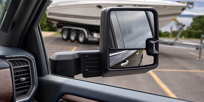 Las tecnologías inteligentes, comoel sistema de alerta de ángulo muerto lateral del remolque19, activan una señal visual en los retrovisores laterales cuando se detecta un vehículo en movimiento en el ángulo muerto lateral, lo que te ayuda a mantener la seguridad cuando transportas una carga pesada.