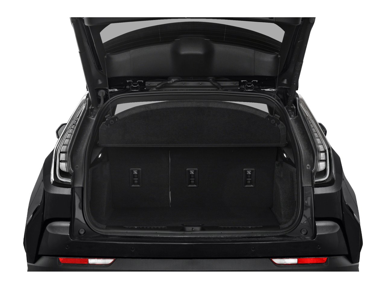 - Se abre o se cierra cuando el sistema detecta el llavero y el conductor extiende el pie bajo el lado izquierdo del parachoques trasero sobre una imagen del escudo de Cadillac proyectada bajo el vehículo.